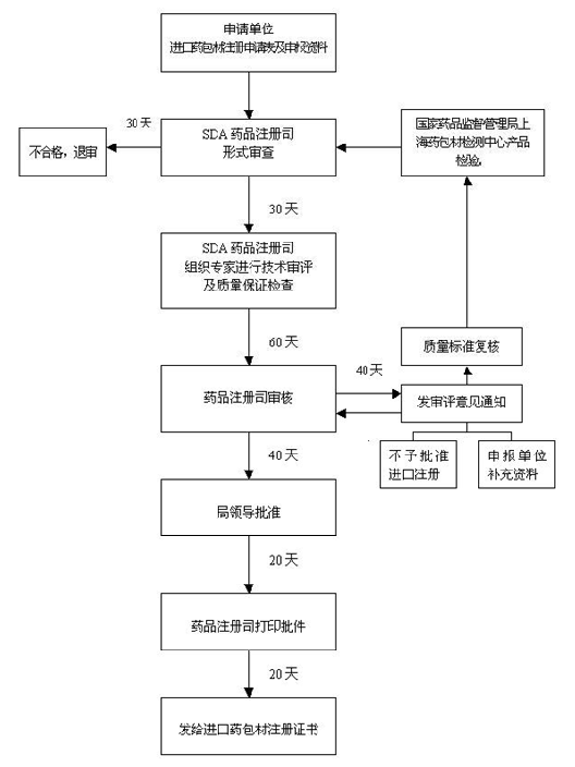 进口药包材申报审批一般程序图